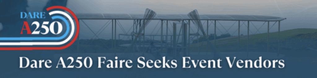 Dare County and the America 250 Committee are inviting artists, nonprofits, retailers, and food & beverage vendors to join the A250 Faire on Saturday, April 18, 2026 at the Wright Brothers National Memorial in Kill Devil Hills.